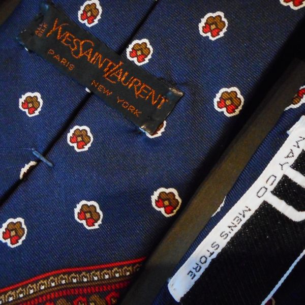 This vintage YSL necktie still has the fabric tag from the men's store in which it was purchased.